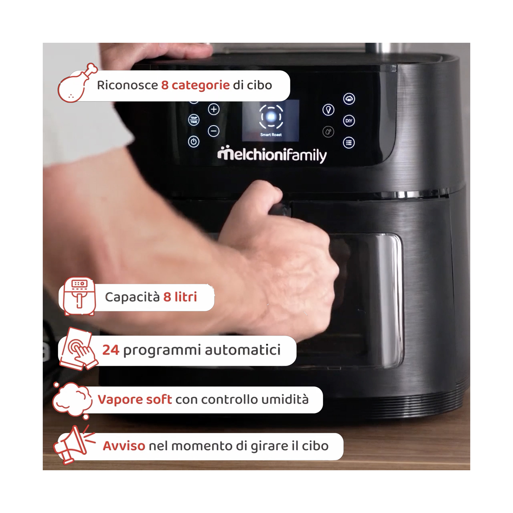 Cibi croccanti fuori e succosi dentro! Il riconoscimento cibo con AI e vapore soft ti garantiscono piatti impeccabili.