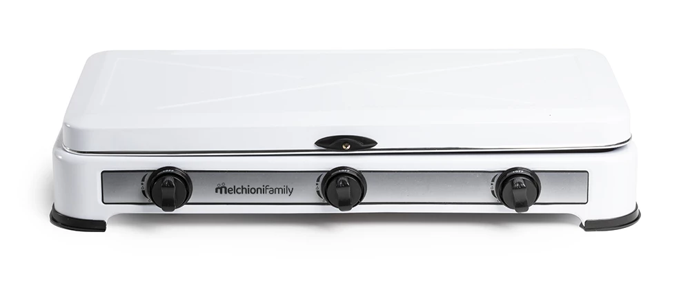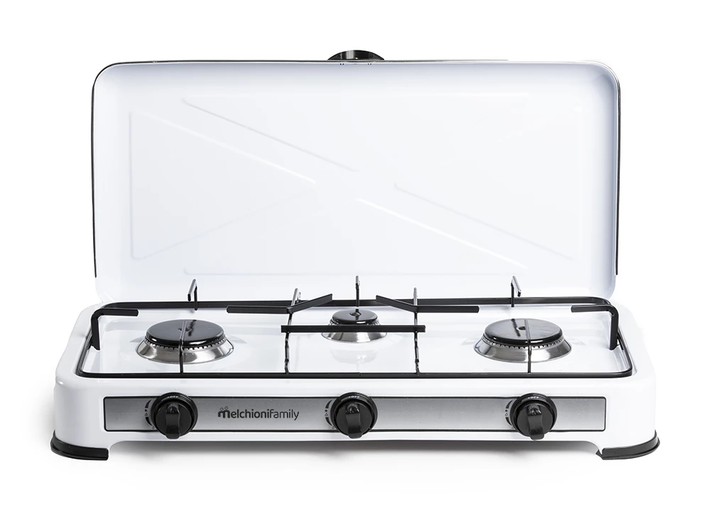 Fornello a gas 3 fuochi con coperchio, 2,9kw, colore bianco